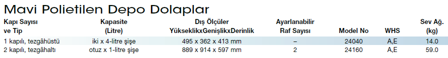 Yüksek derecede aşındırıcı asitler için Justrite polietilen dolaplar kimyasal aşındırma ve sızıntılar için maksimum koruma sağlar. Her iki modelde asit içerik için uygun etiketlenmiştir ve güvenliği artırmak için asma kilit (paket içeriğine dahil değildir) takılabilir. Tezgahüstü Polietilen Dolap 2 tane 4 lt.’lik şişeyi depolar. Kapısı en iyi çalışma alanı kullanımı için her iki taraftan da menteşelenebilir.Polietilen dökülme tablasının içinde oluklar vardır ve kolaylıkla çıkarılıp temizlenebilir. Ayrı bir polietilen tabla dolabın altında bulunur ve beceri gerektiren işlerde kullanılabilir. Tezgahaltı Polietilen Dolap 30 adet 1 lt.’lik şişeyi veya muhtelif hacimlerde kabı depolar. Her bir ayrılmış kısmın ayarlanabilir bir rafı ve küçük kaplar için iki kapıdan da depolanma olanağı vardır. İki çıkarılabilir karter kaza ile dökülmelerde kolay temizlenmesini sağlar. Arkadaki iki havalandırma deliği (çıkarılabilir başlıklarla) ile basınçlı buharla çıkarmalı sisteme sahiptir. Birim dolabı duvara sabitlemek için bağlantılar içerir.